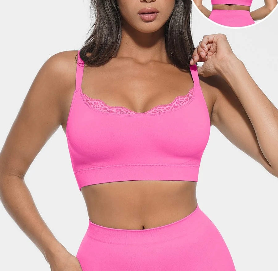 2. Sexy Scoop Neckline: Lace detailing adds a playful, sexy touch, perfect for wearing outside.